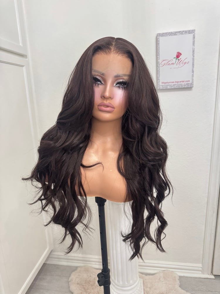 HD lace front plucked natural hairline free parting 13x6 lace wig, Human hair and synthetic blended luxury fiber, most realistic hair texture Stretch one size fits all breathable cap 28 inch length heat resistant up to 400°. Final sale item