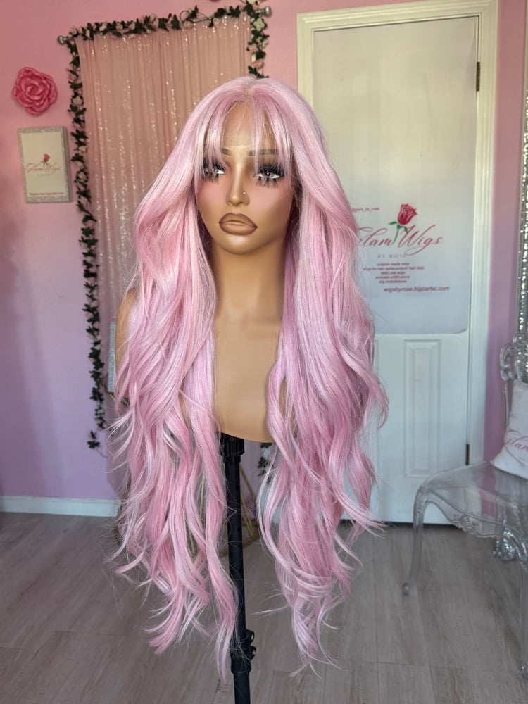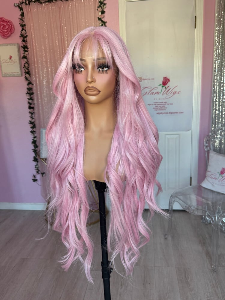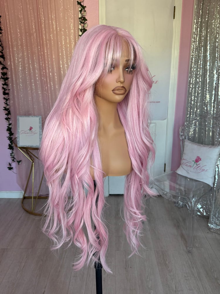 33 inch t part lace front glueless wig, human hair and synthetic blended luxury fiber heat resistant up to 400° combs and adjustable straps, stretch cap final sale item