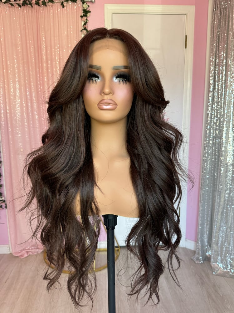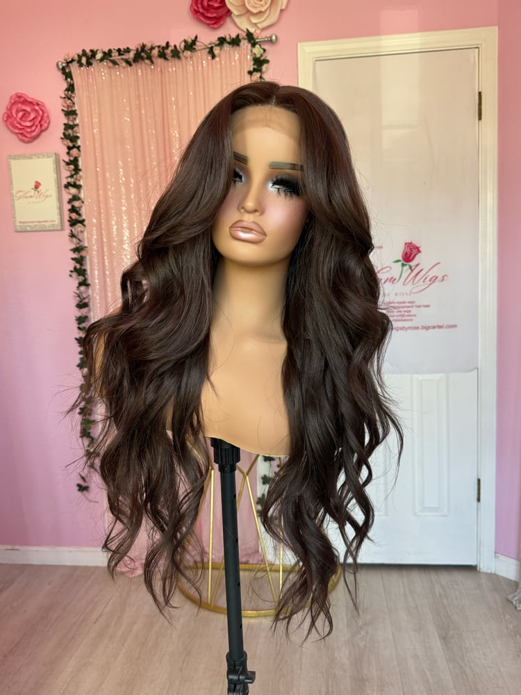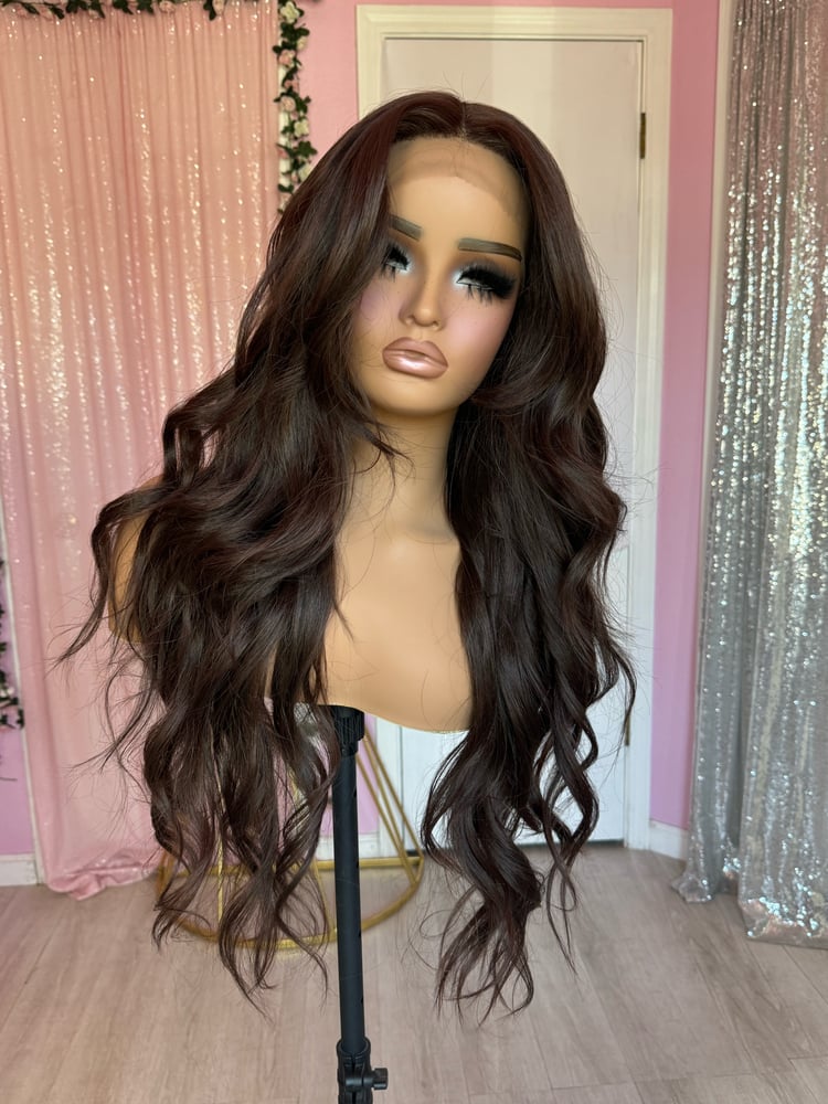 T part lace front luxury synthetic and human hair blended fiber, glueless wig heat resistant up to 400 degrees, plucked natural hairline, combs and adjustable straps 29 inches, final sale item