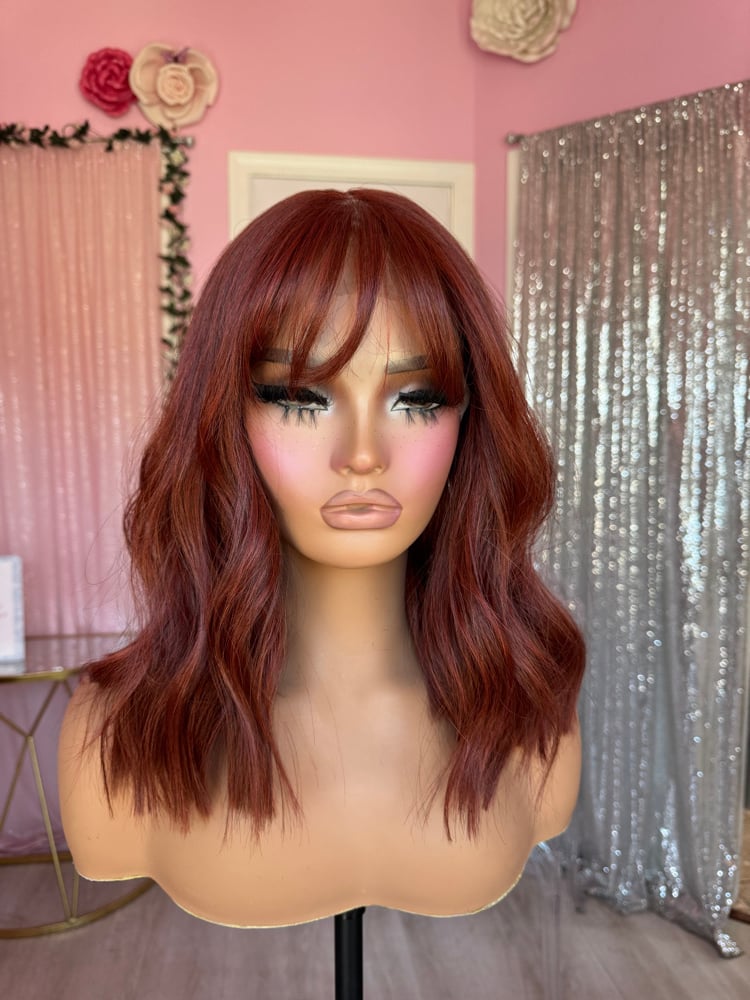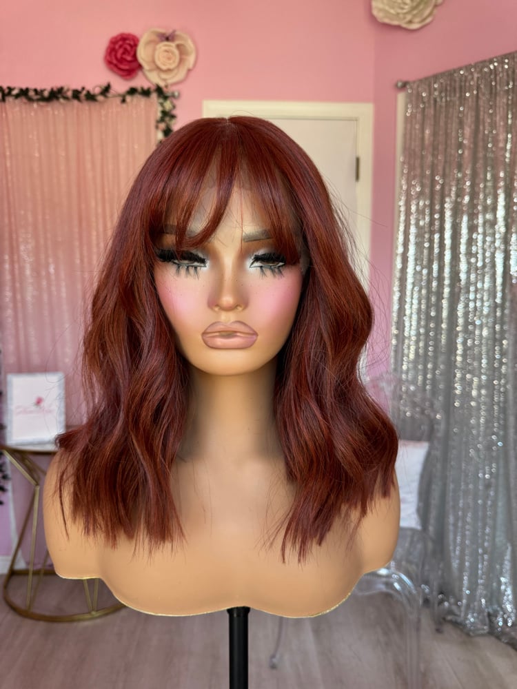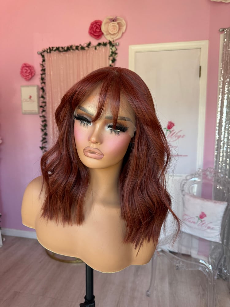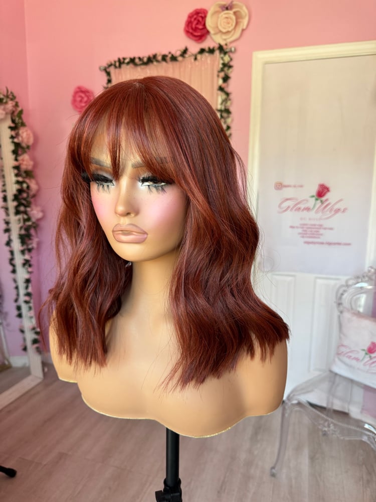 16 inches t part lace front glueless wig synthetic and human hair blended fiber heat restores up to 400, combs and adjustable straps with adjustable bands inside and combs, soft silt texture, stretch breathable cap, final sale item pre-order takes about 2 to 3 week delivery