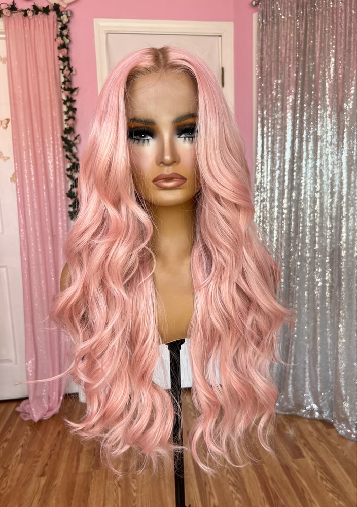One size fits all light lace t part lace front hand painted shadow roots for natural hairline stretch cap No glue needed. Wig sits nice and secure, luxury synthetic fiber blended with human hair mimics natural hairs texture look and feel, hair keeps its style, heat resistant up to 400° combs and adjustable straps inside.