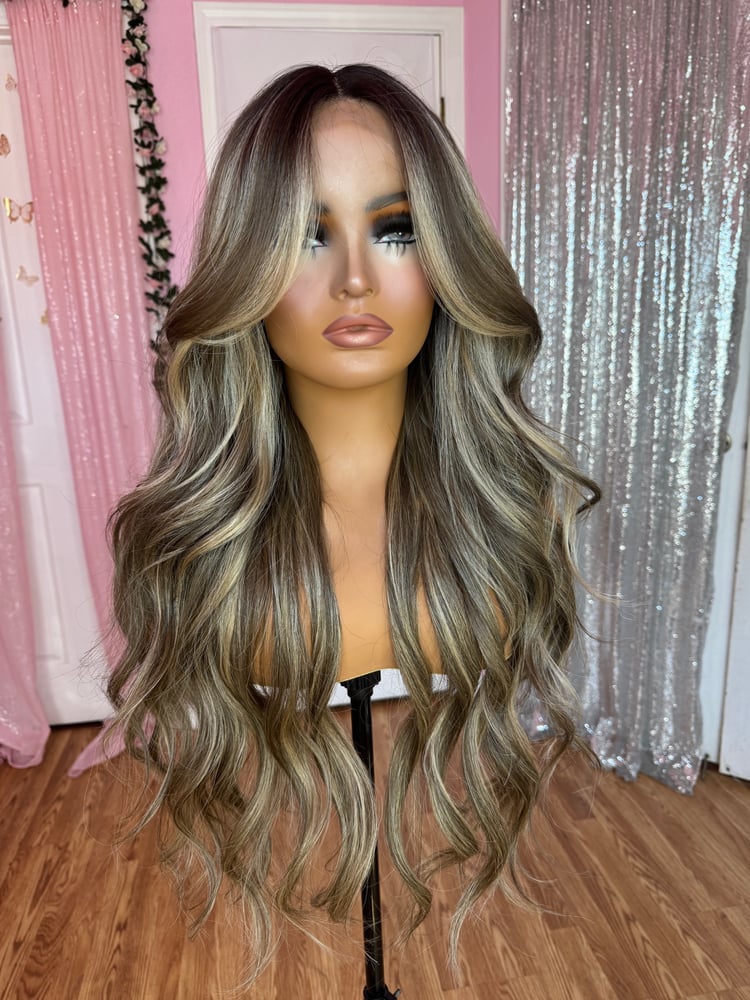 One size fits all stretch cap luxury synthetic blended wig heat resistant up to 400° t part wig, shiftable for side part, combs and adjustable straps inside for security, natural look feel and texture, hand plucked parting space for natural look