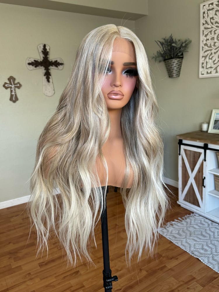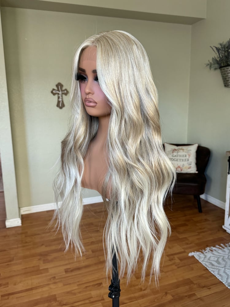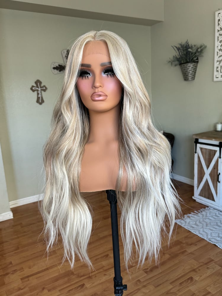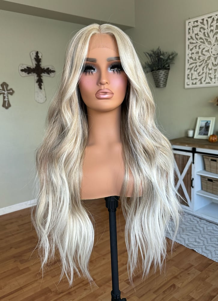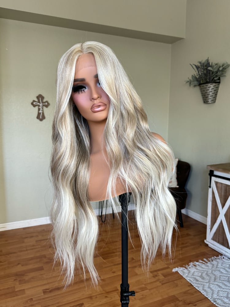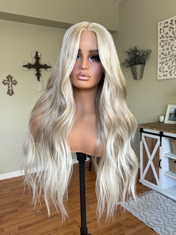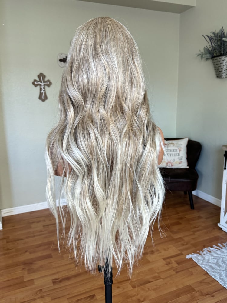 26 inch HD lace front t part lace glueless wig, heat resistant up to 400° luxury human hair and synthetic blended fiber for natural soft hair texture, combs and adjustable straps inside for security, final sale item