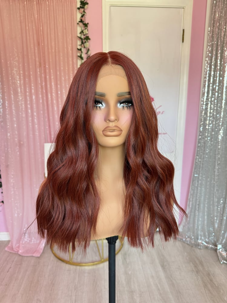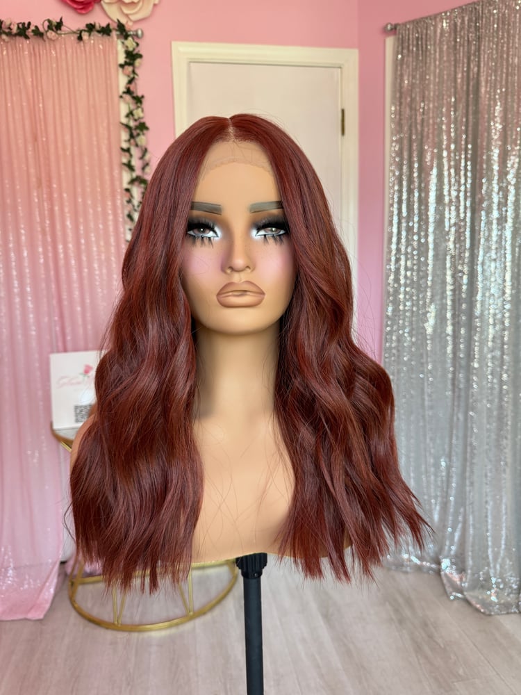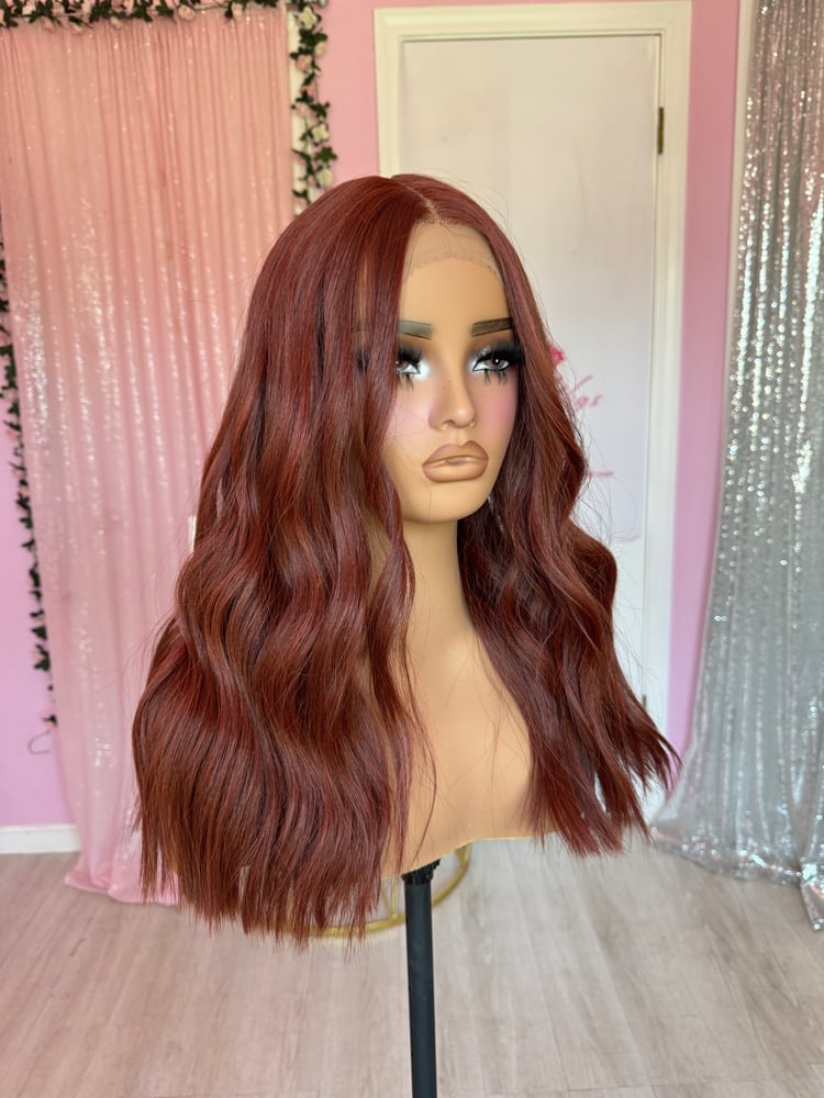 18 inch t part lace front glueless wig with plucked natural hairline, human hair and synthetic blended fiber heat resistant up to 400° combs and adjustable straps for security, soft natural hair texture