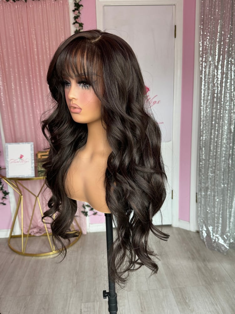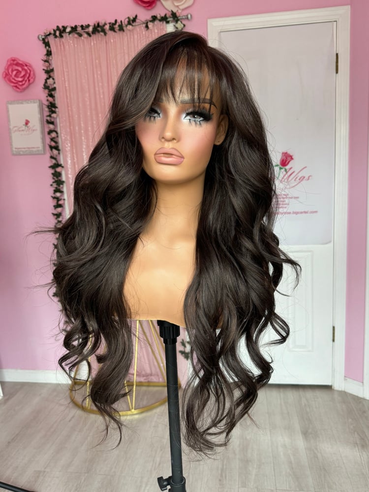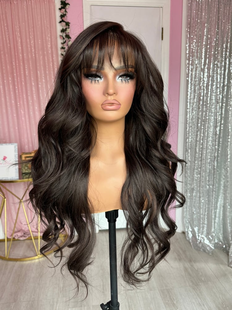 28 inches 13x4 lace front glueless wig with pre cut lace,ready to wear, human hair and synthetic blended luxury fiber heat resistant up to 400° soft natural hair texture with elastic band inside, final sale item