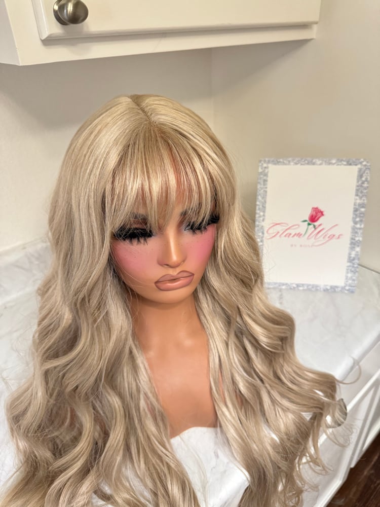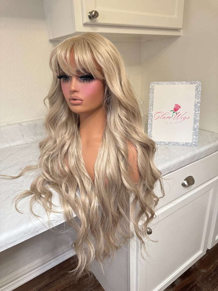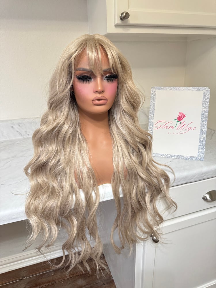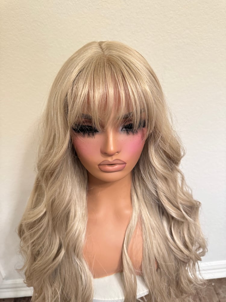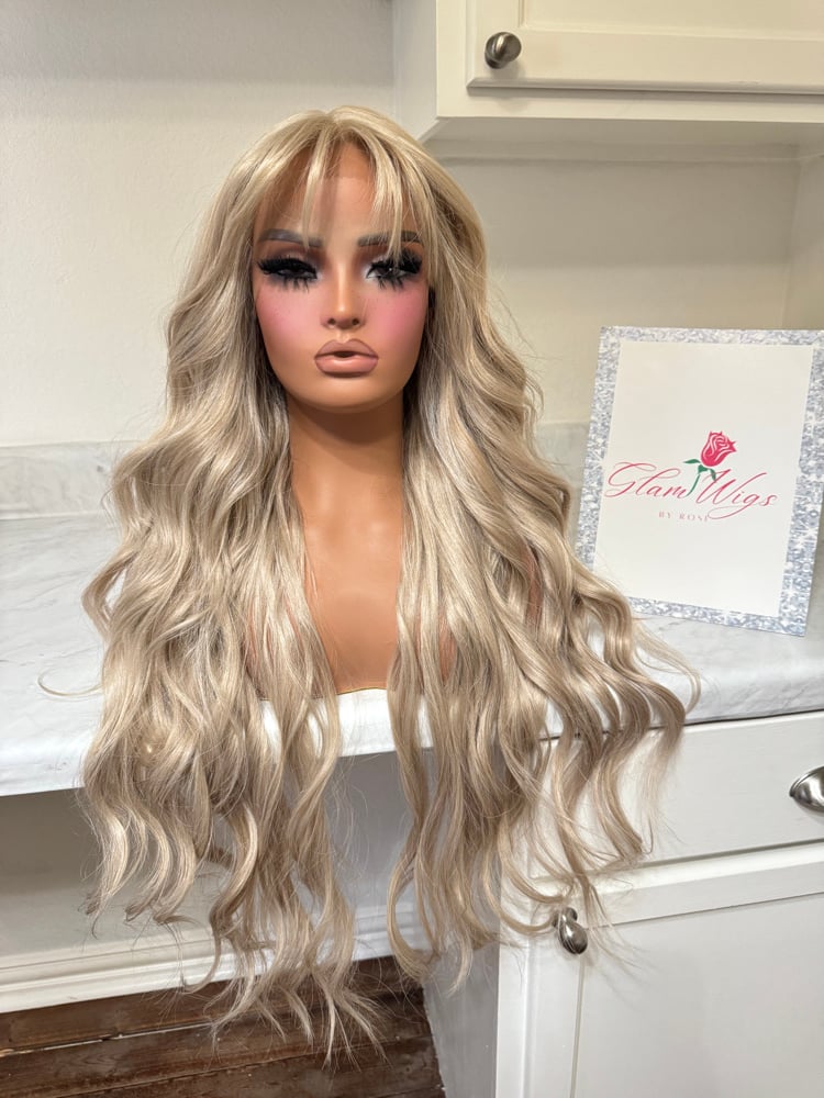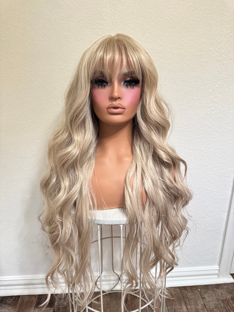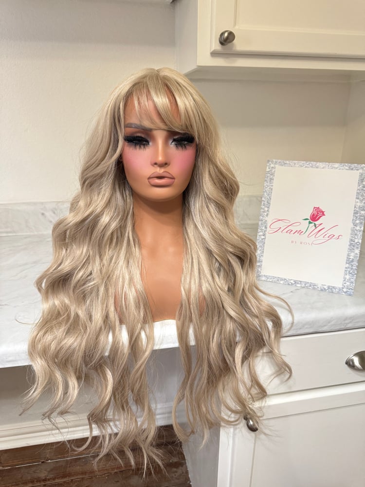 30 inches t part lace front glueless wig Luxury synthetic and human hair blended fiber heat resistant up to 400° please refer to card that comes with your order for heat styling and car instructions stretch one size fits all cap fits heads circumference up to 23, combs and adjustable straps inside final sale item