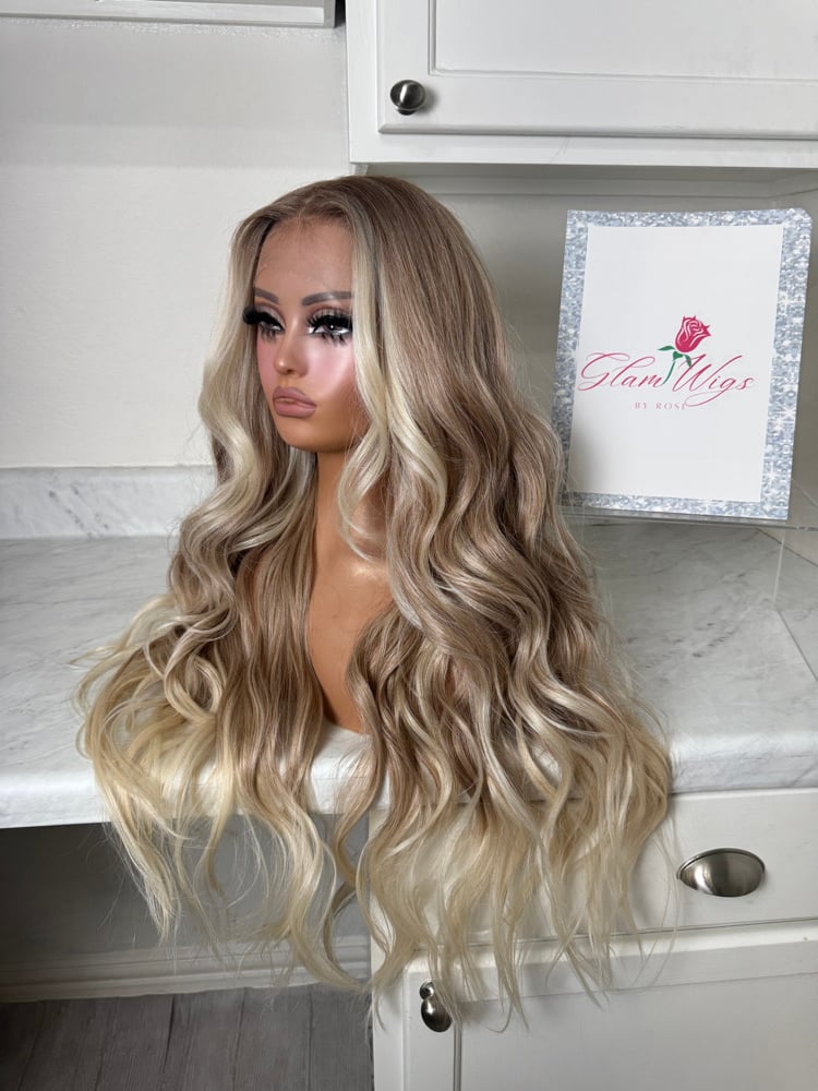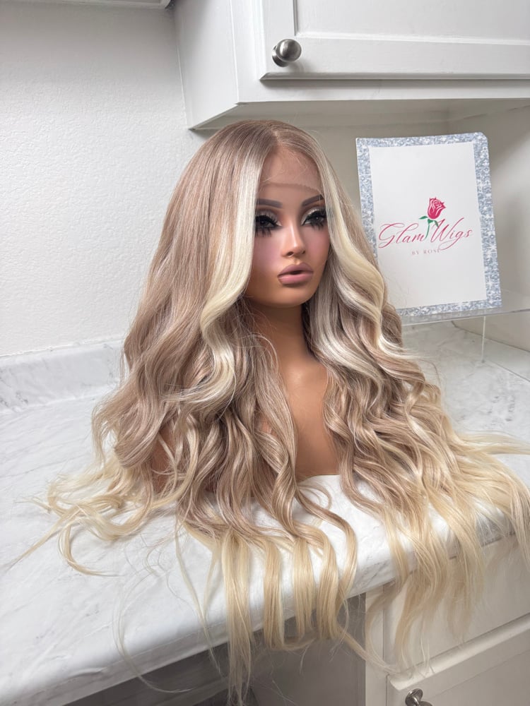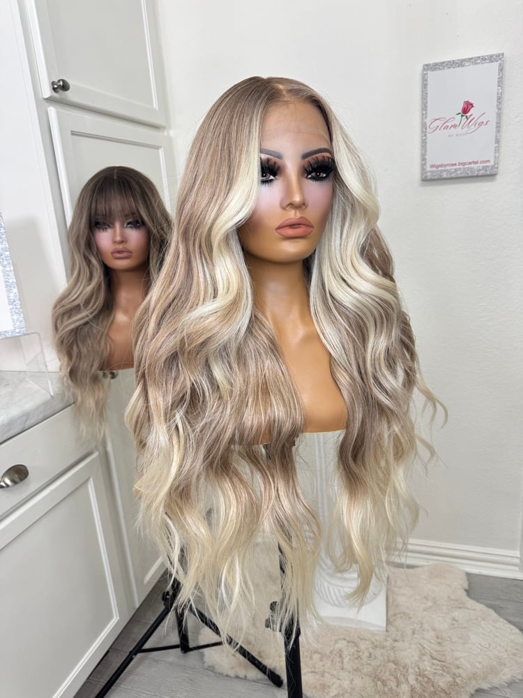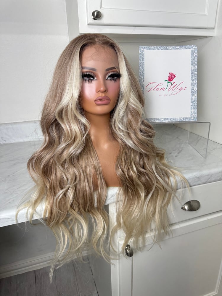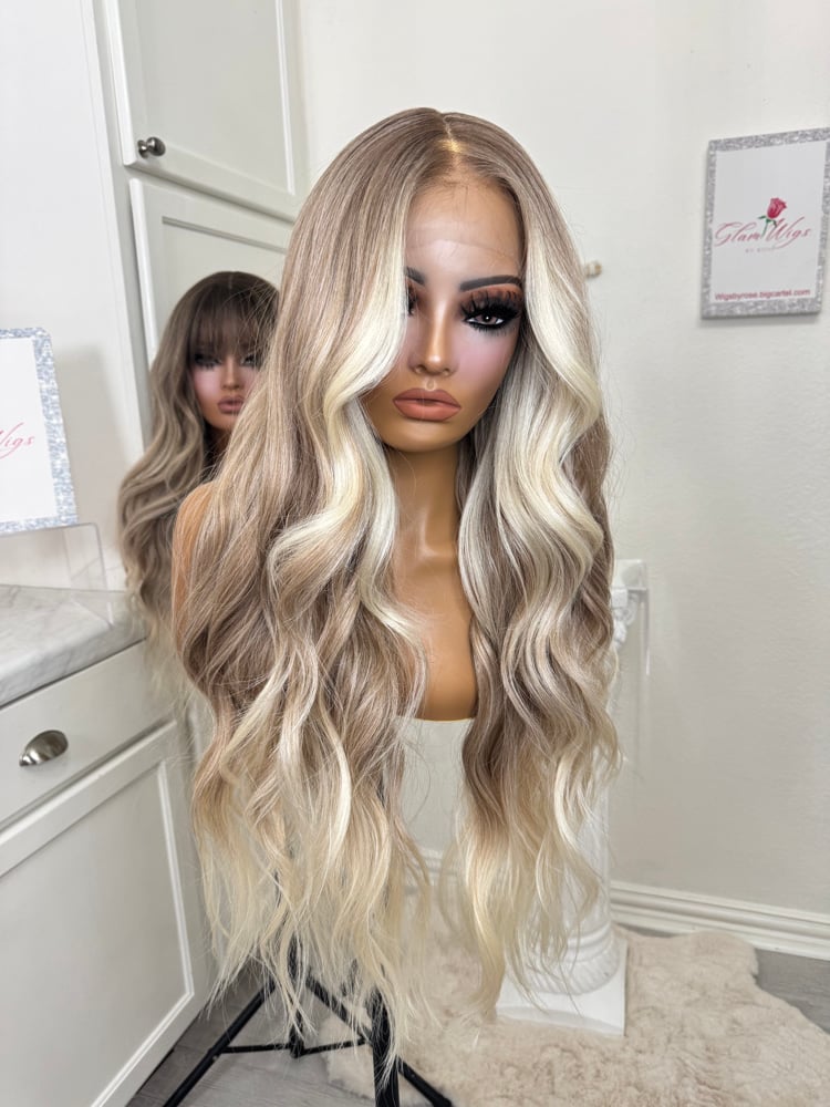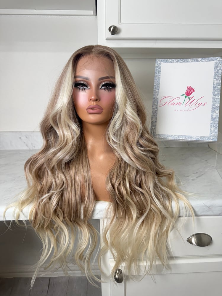 Free part lace front 29 inches luxury synthetic and human hair blended fiber most realistic hair texture, best restant up to 400, please refer to card that comes with order for heat styling and care instructions. Combs and adjustable straps inside for glueless use, part any direction at top of wig, stretch breathable one size cap. Final sale item.