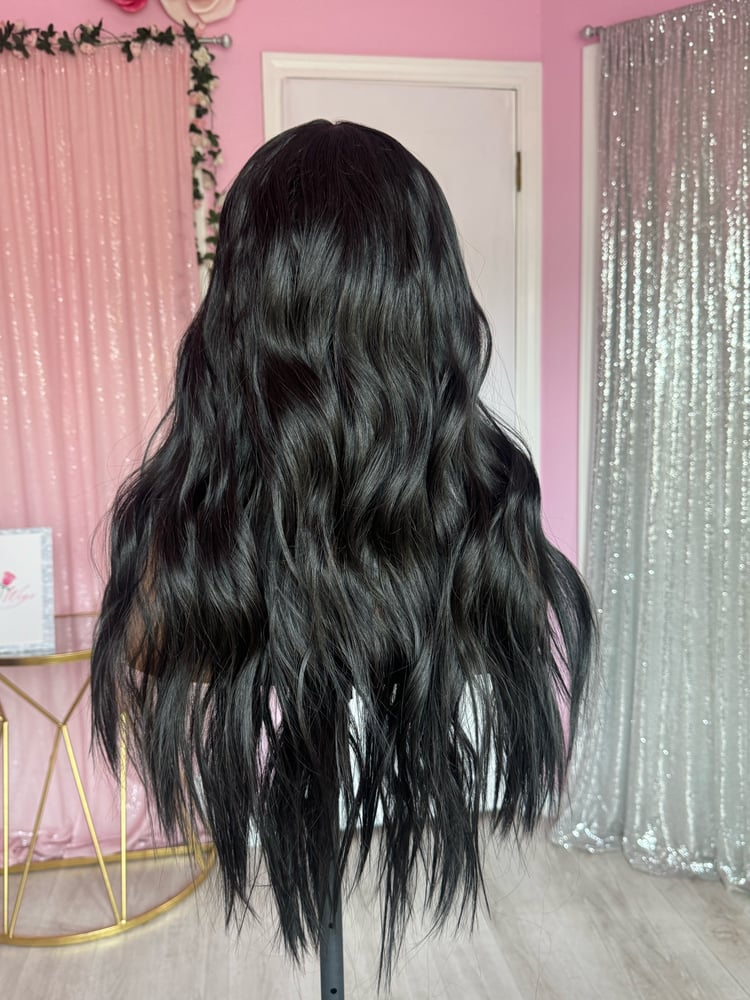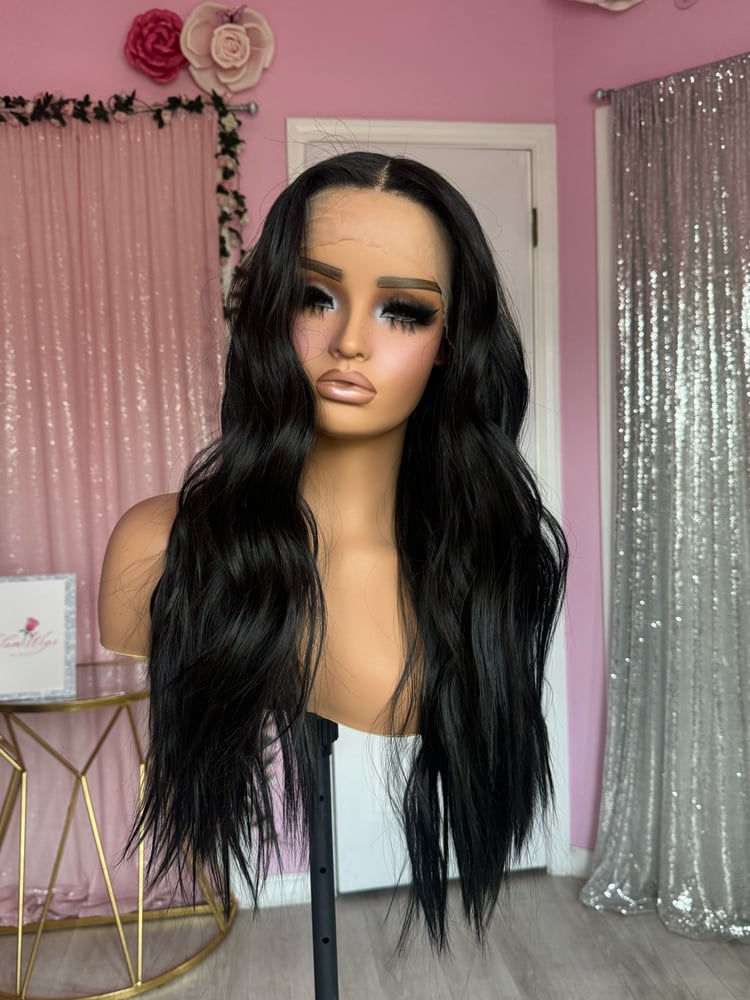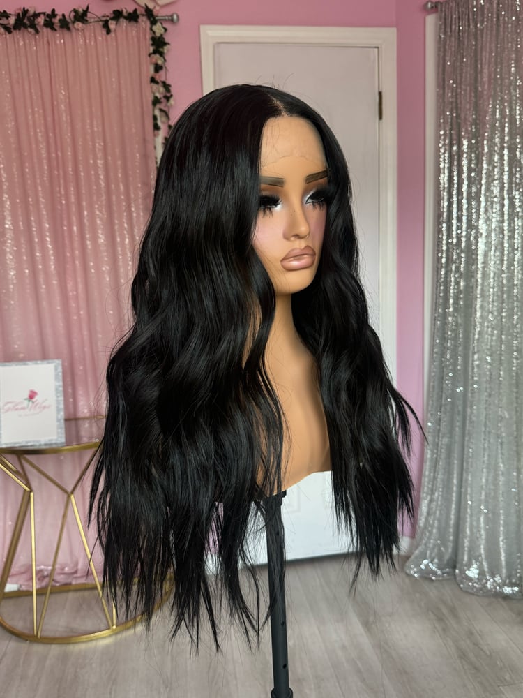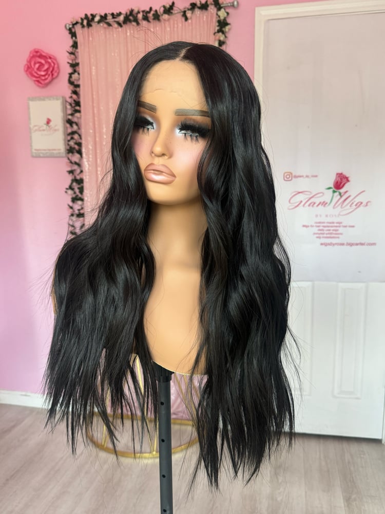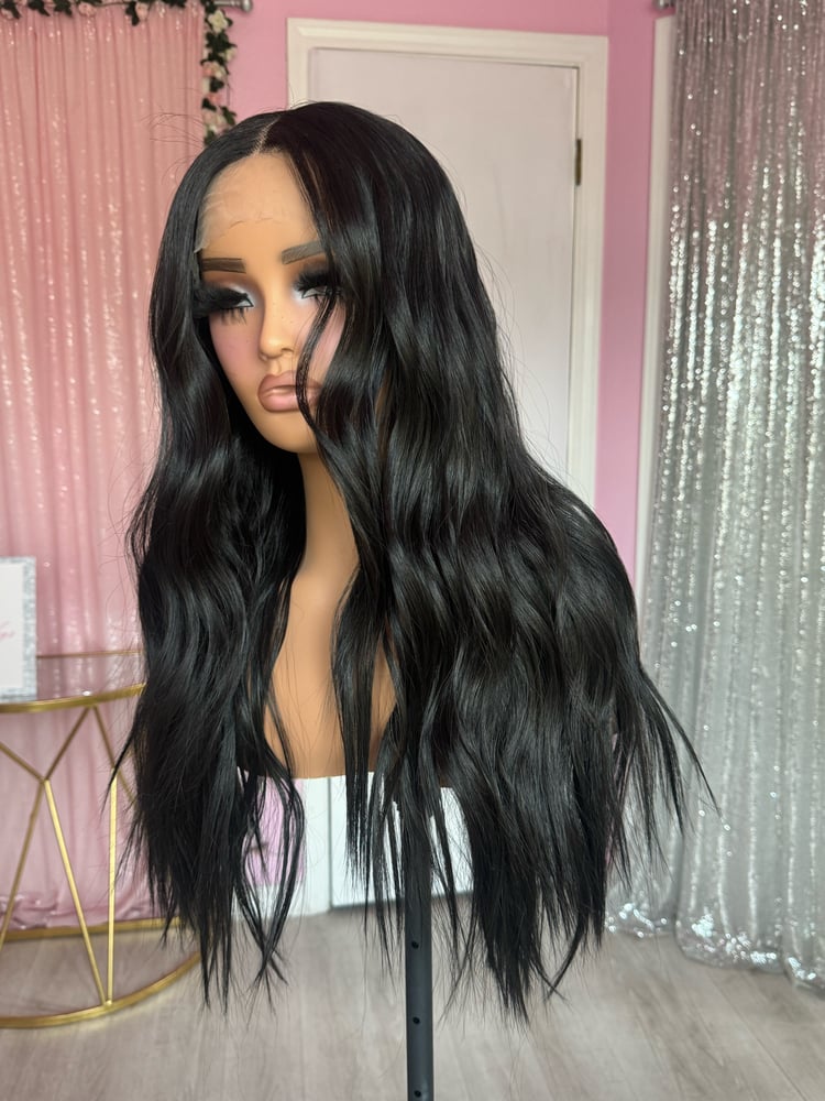 22 inch lace front luxury human hair and synthetic future fibers, plucked natural hairline with baby hair, heat resistant up to 400 combs and adjustable straps inside final sale item