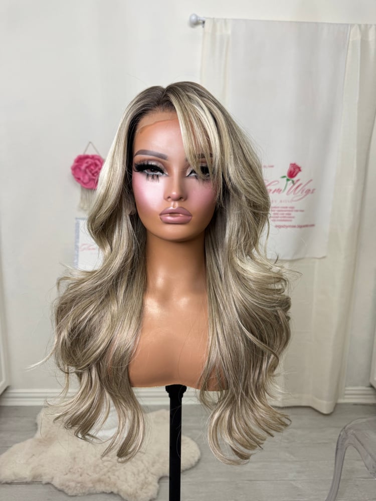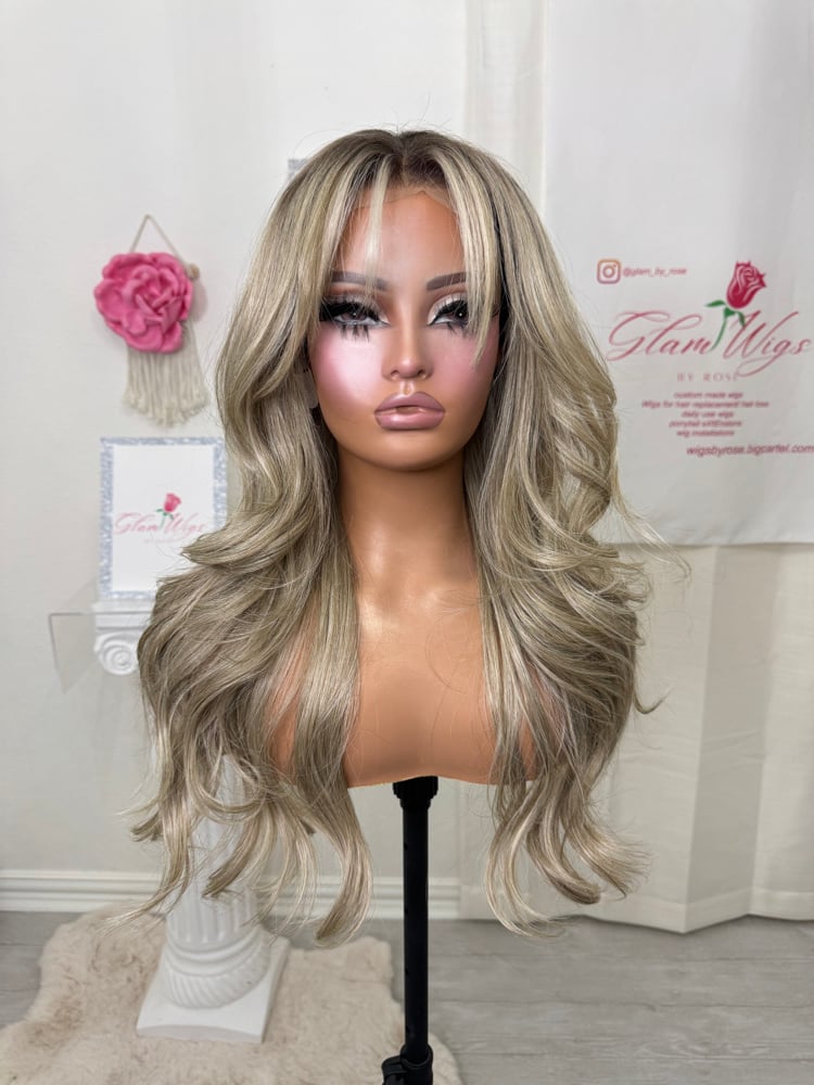 style tip: use a hot comb on low heat also available for purchase on the website to press the hair down into the direction you want your part to fall, Silky soft hair texture one size fits all stretch breathable cap, with combs and adjustable straps inside, wispy cut layers, final sale item.