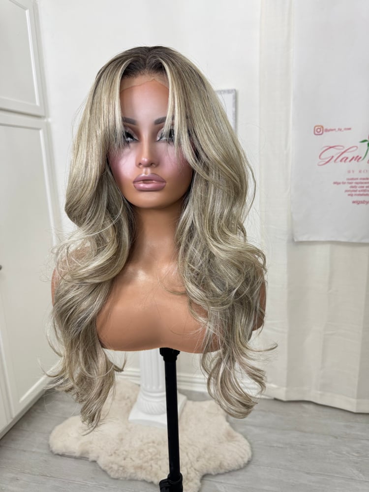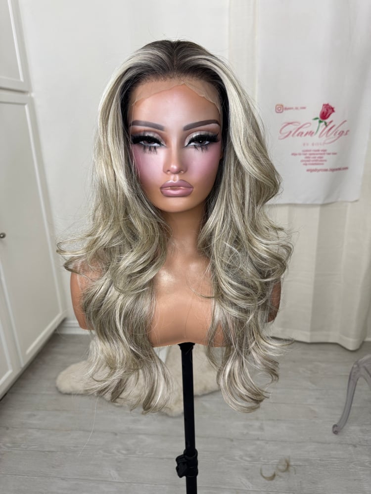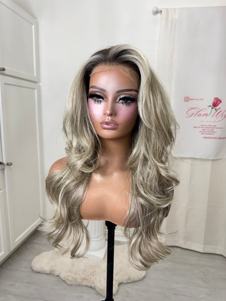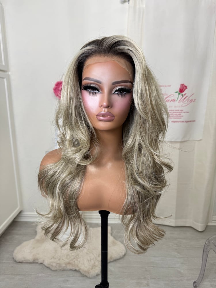26 inches 13x6 lace front free parting glueless lace wig, hand plucked natural hairline, freely part hair anywhere at the top of the wig in between the front lace, Heat resistant up to 400 luxury synthetic blended fiber,