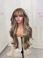 33 inches t part lace front glueless wig, Natural plucked hairline, synthetic and human hair blended luxury fiber one size fits all stretch cap combs and adjustable straps with elastic band, Heat resistant up to 400° , final sale item