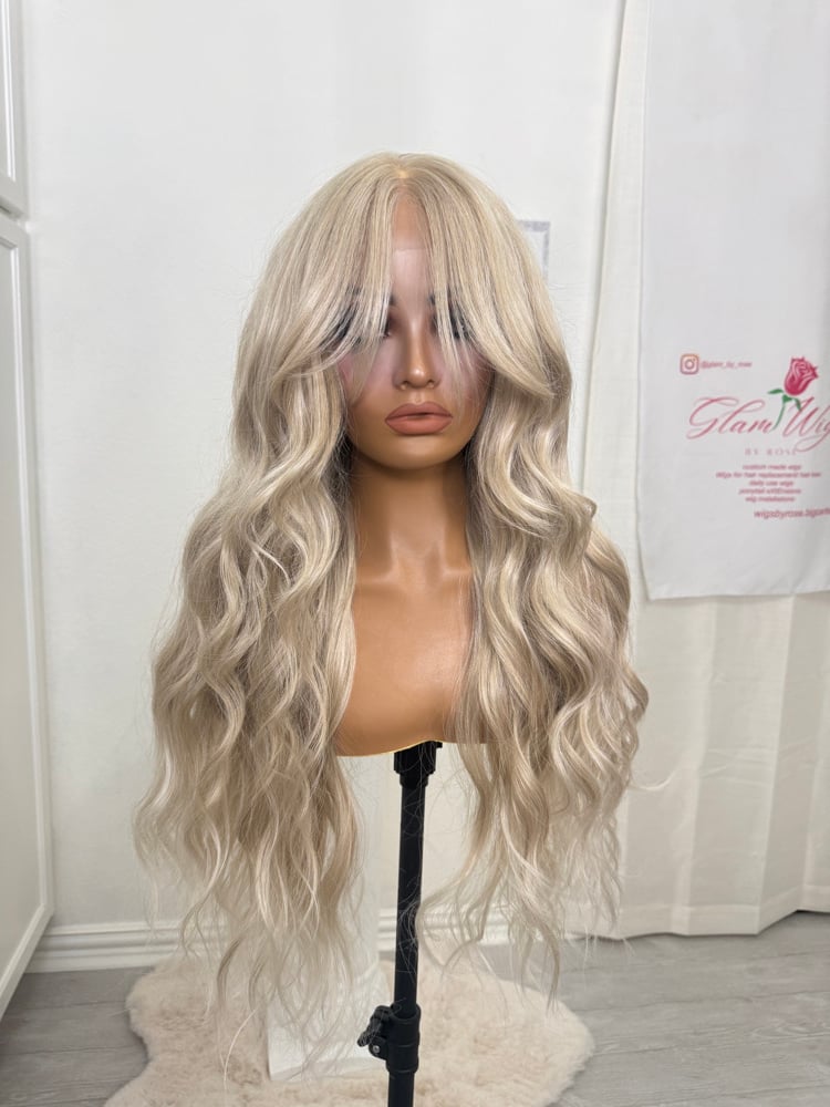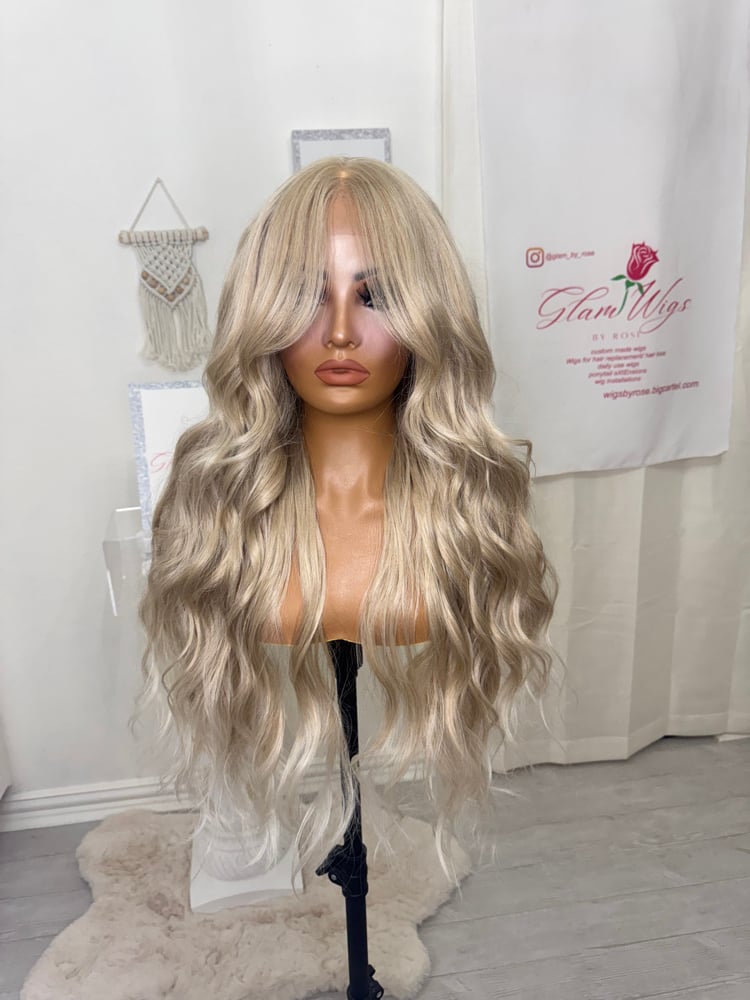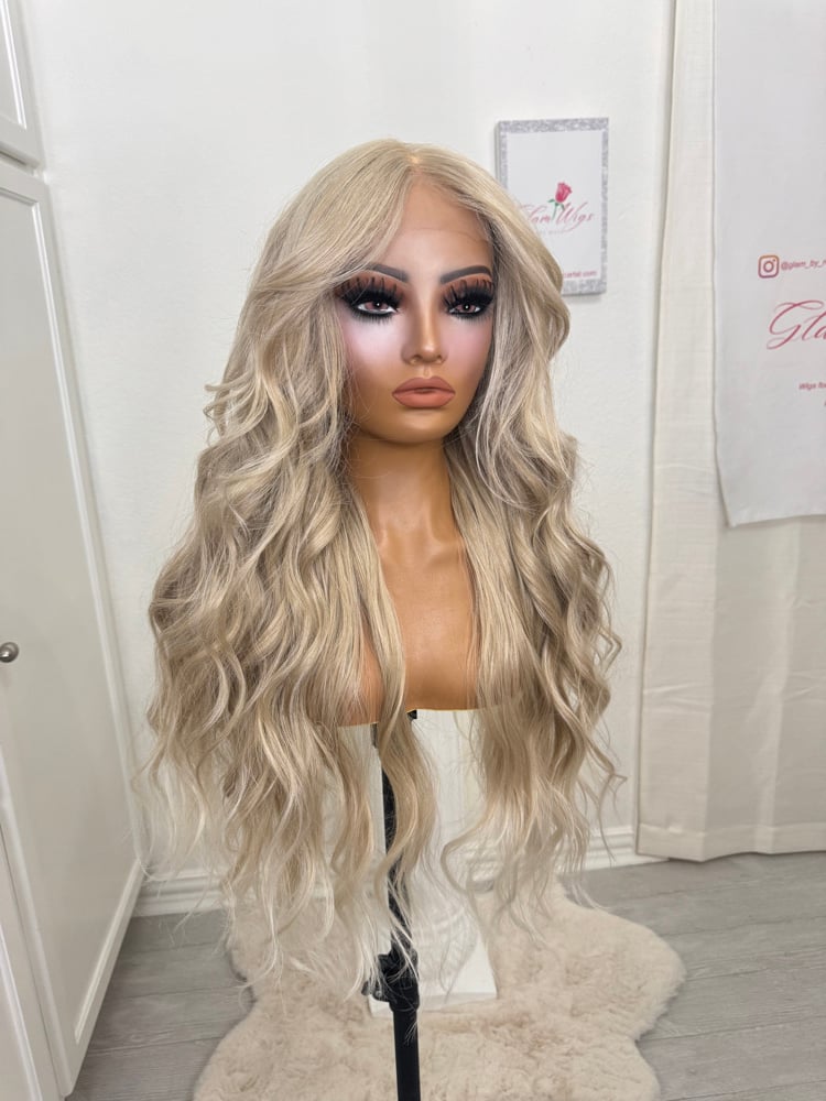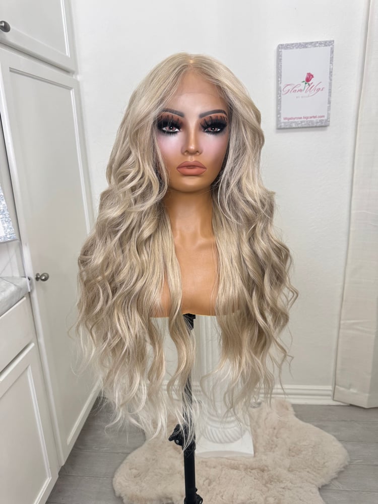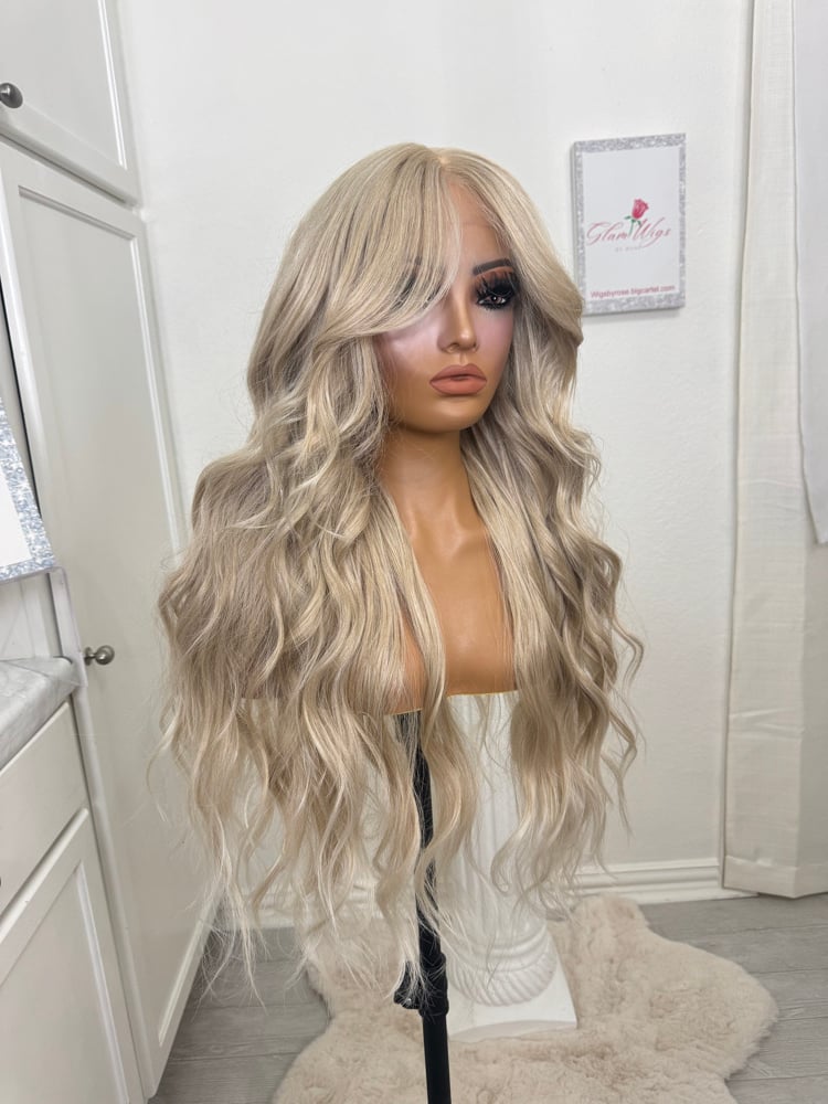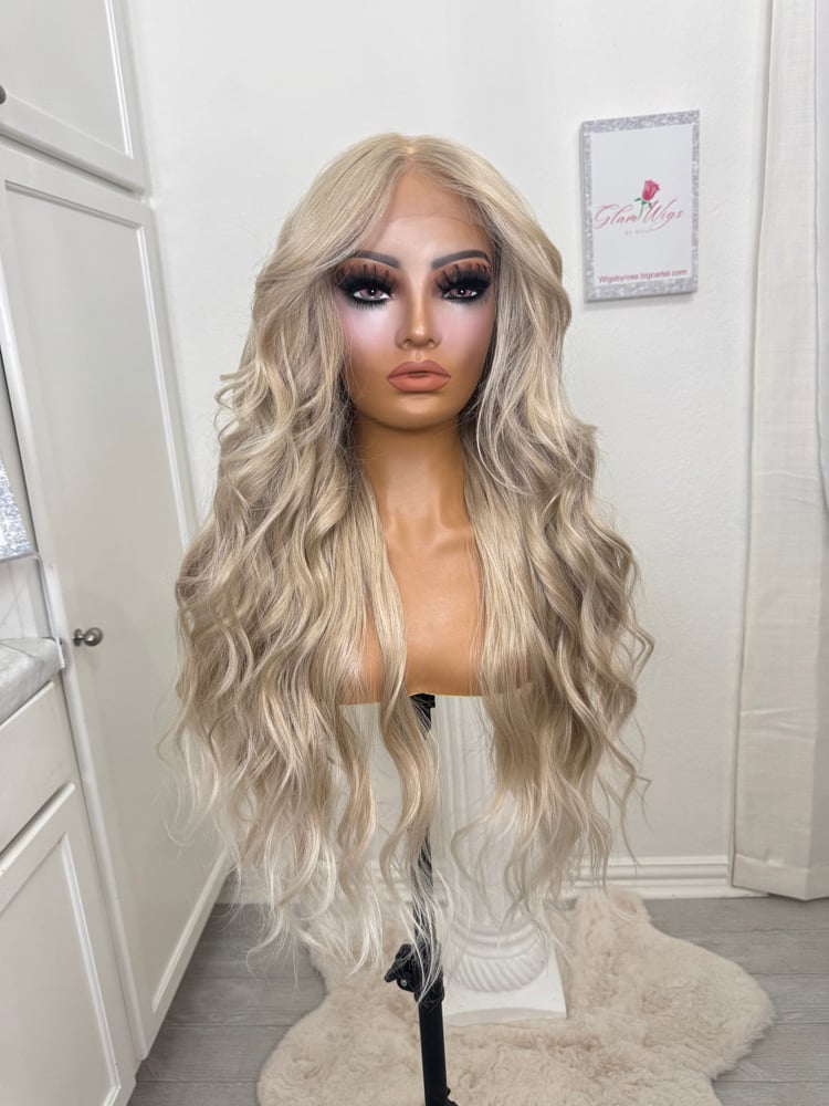 33 inches 13x6 lace front free part lace glueless wig, Luxury human hair and synthetic blended fiber, best hair quality, heat resistant up to 400°, soft natural hair texture, one-size-fits-all stretch breathable cap with combs and adjustable straps, 210 density, nice and full look, final sale item