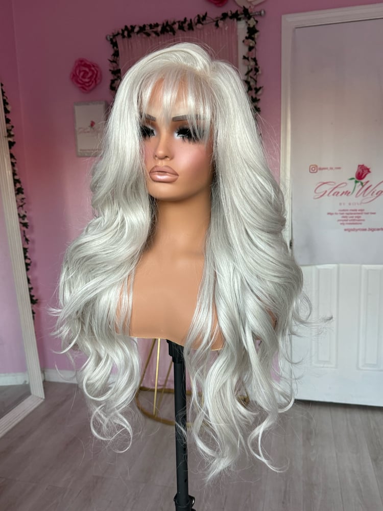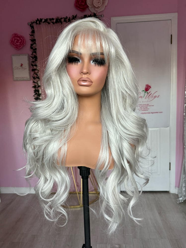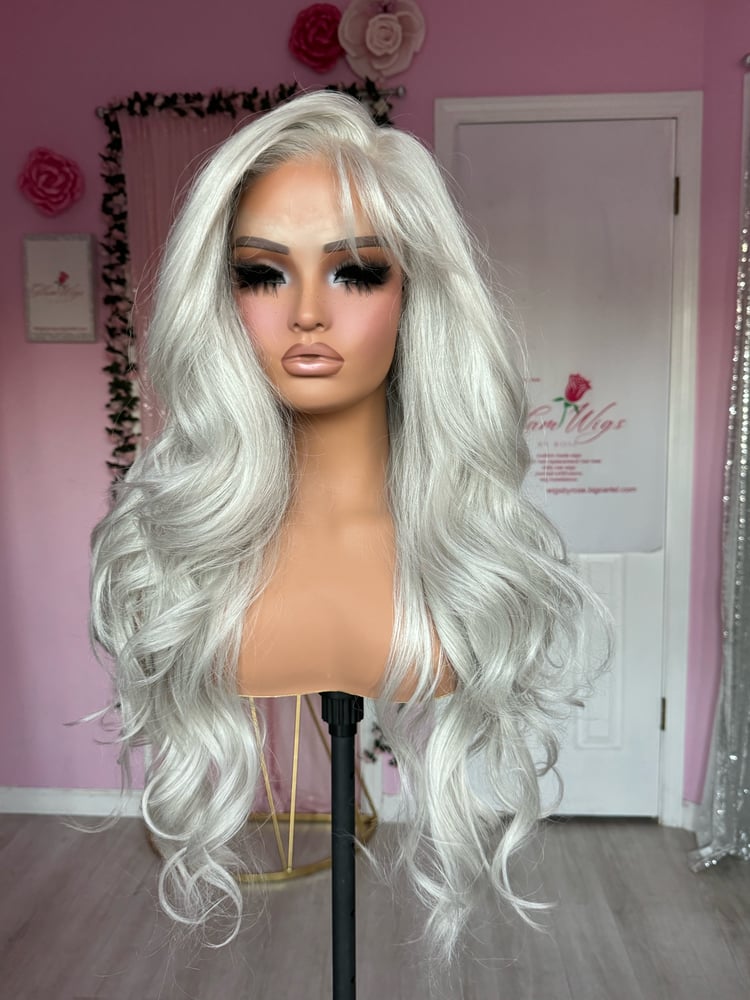 13x6 lace front glueless wig with HD lace hand plucked and pre cut for ready to wear use, human hair and synthetic blended luxury fiber, ultra realist and natural hairline and hair texture. Heat resistant up to 400, combs and adjustable straps with elastic band. Final sale item, pre order arrives within 2 and a half weeks.
