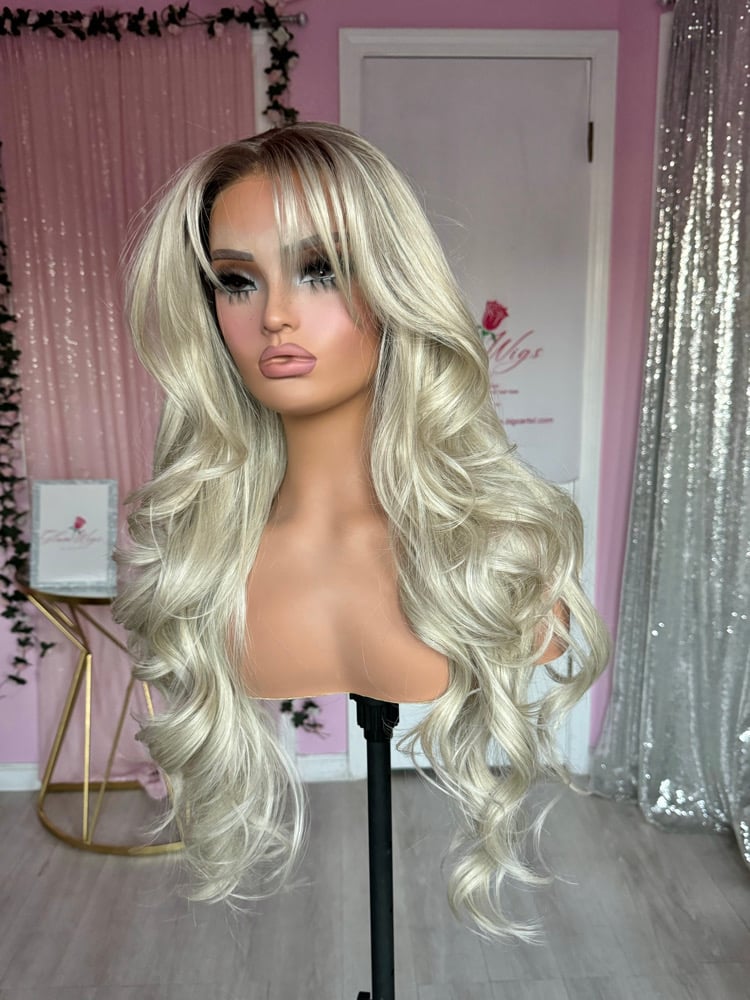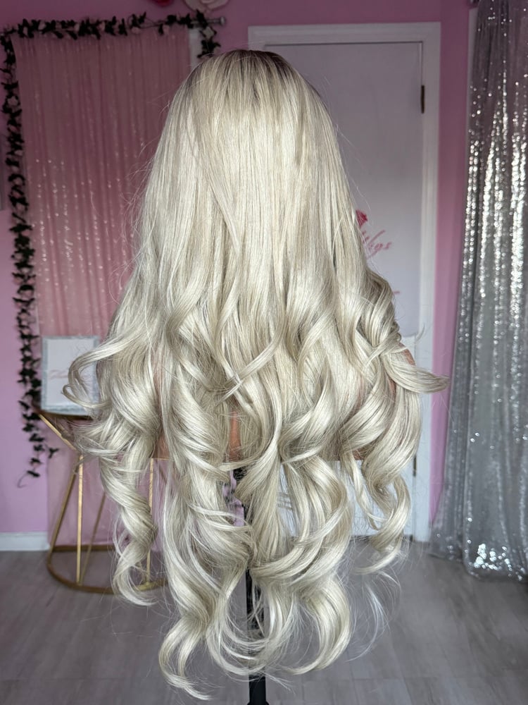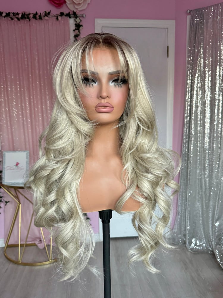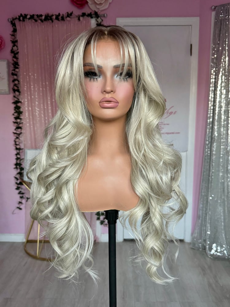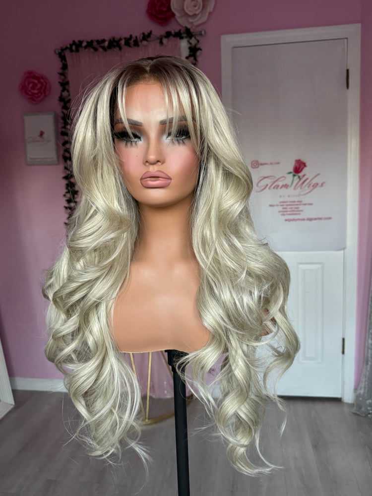 28 inch HD lace front 13x6 free part wig, glueless wig soft luxury fiber heat resistant up to 400, stretch, breathable cap pre cut lace, medium density, final sale item