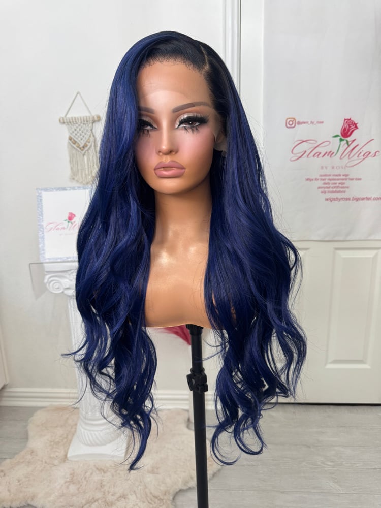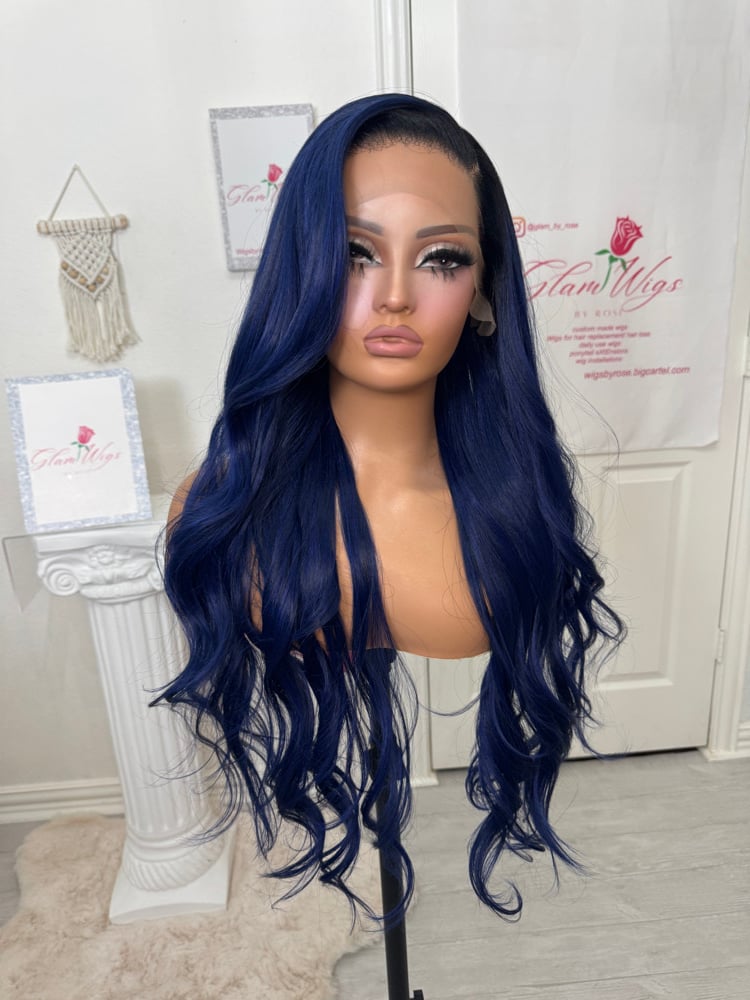 34 inches t part lace front glueless wig, Synthetic and human hair blended luxury fiber, best hair quality, soft natural hair texture, one-size-fits-all stretch breathable cap with combs and elastic straps. final sale item.