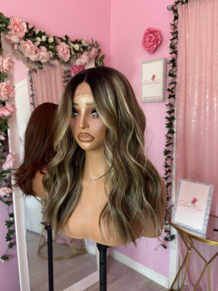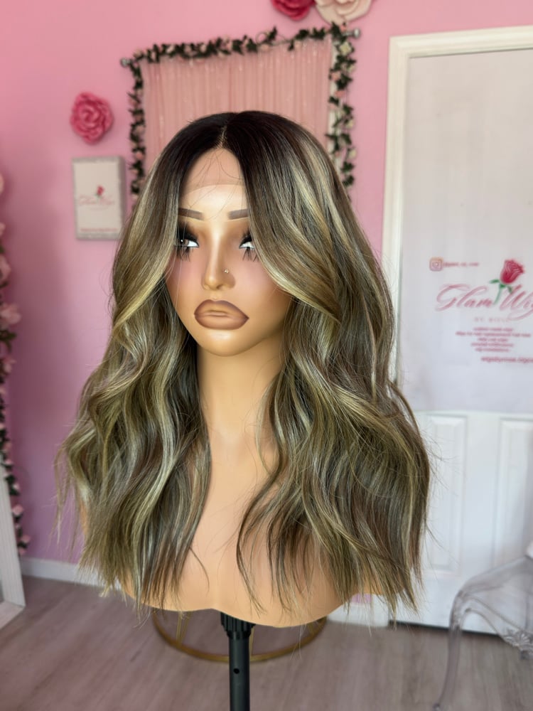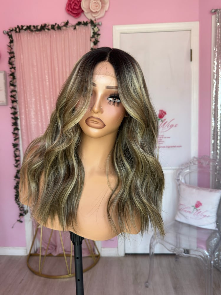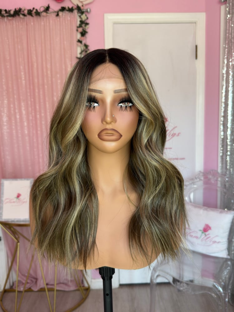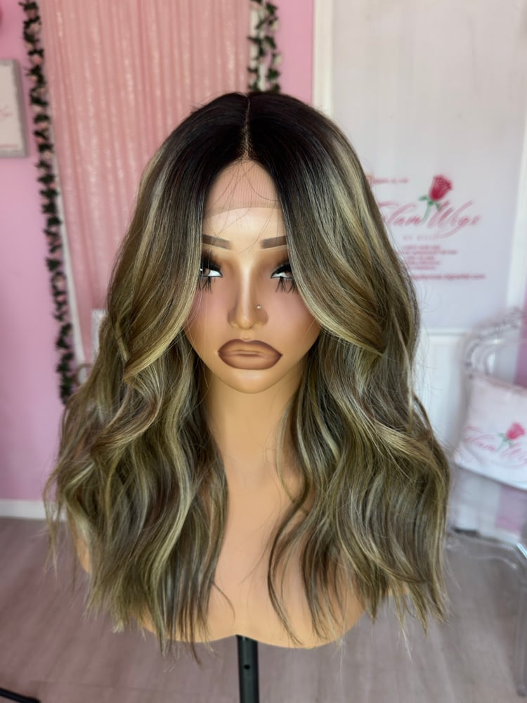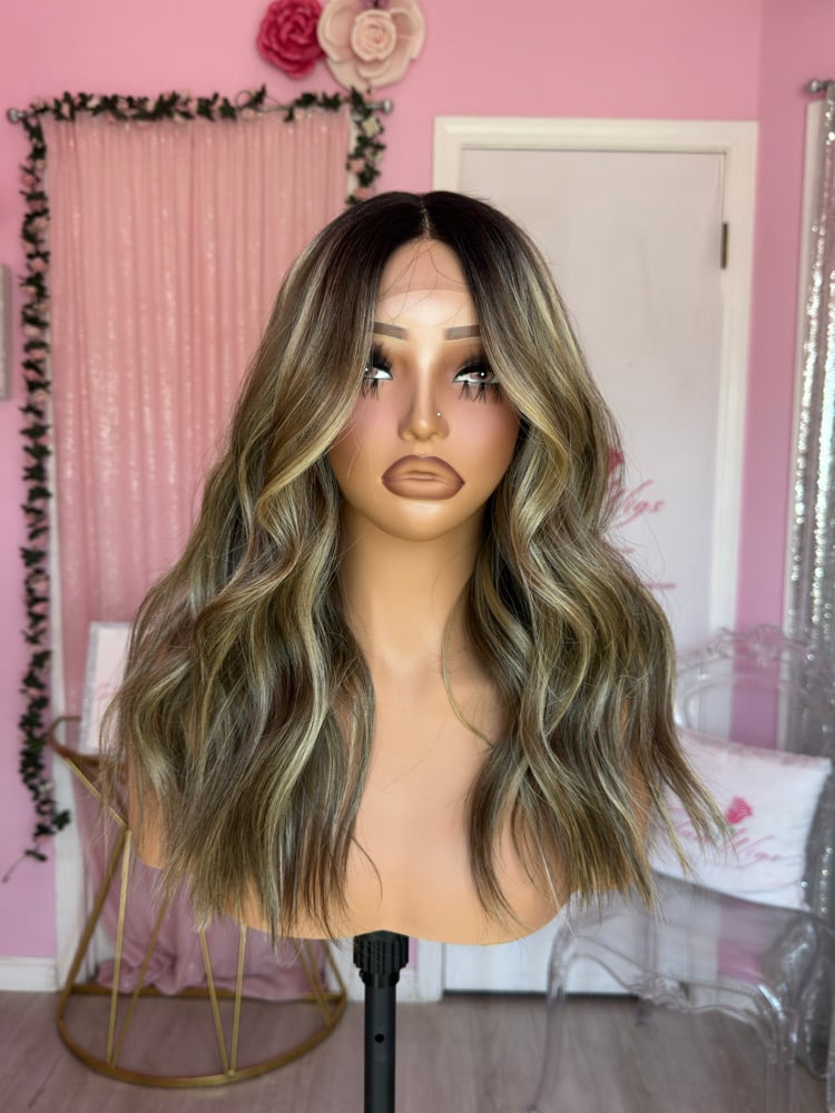18 inches tea part lace front glueless wig, synthetic and human hair blended luxury fiber heat resistant up to 400° natural hair texture. Please refer to card that comes with your order for heat styling and care Instructions. combs and adjustable straps inside stretch breathable cap final sale item.