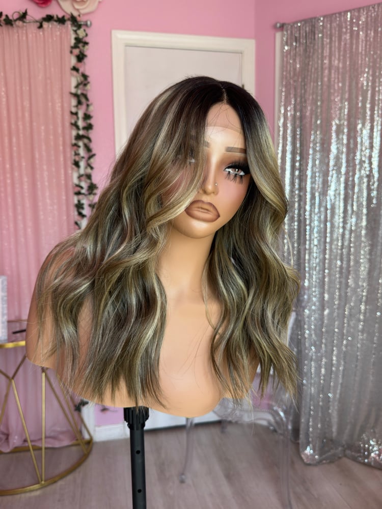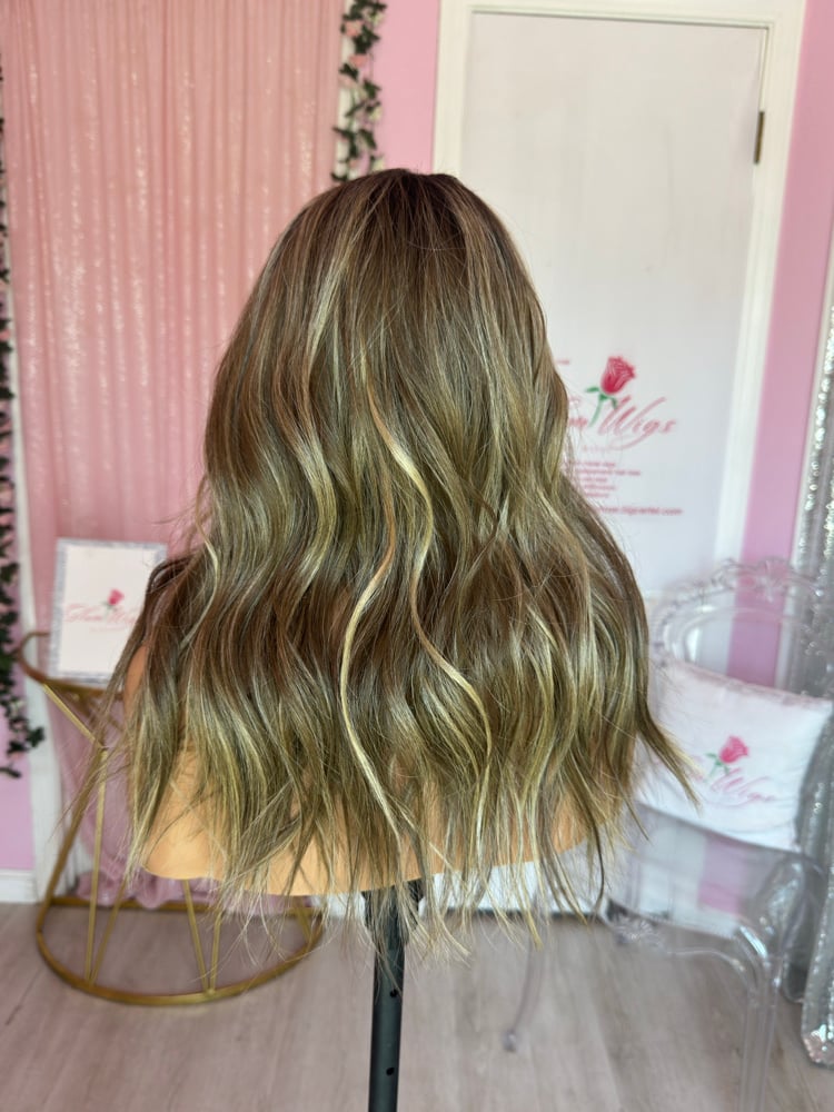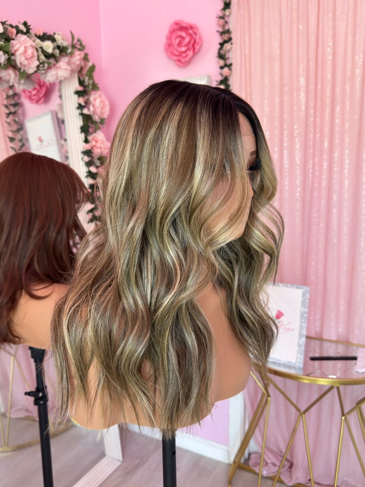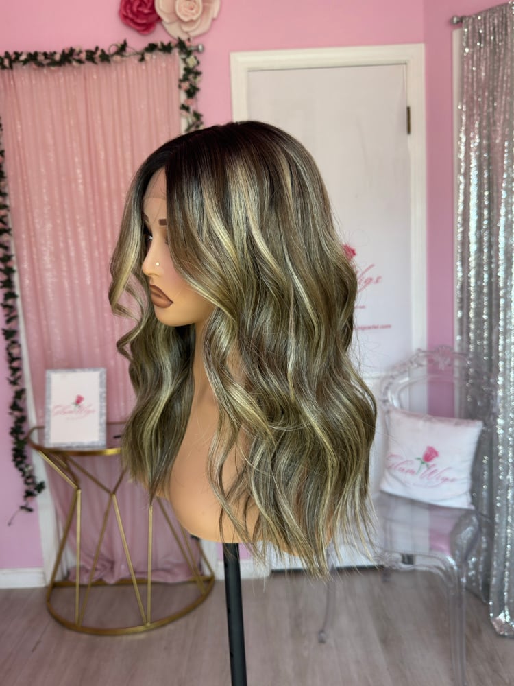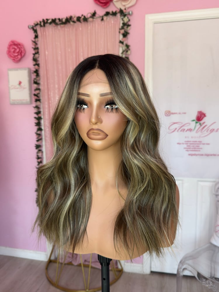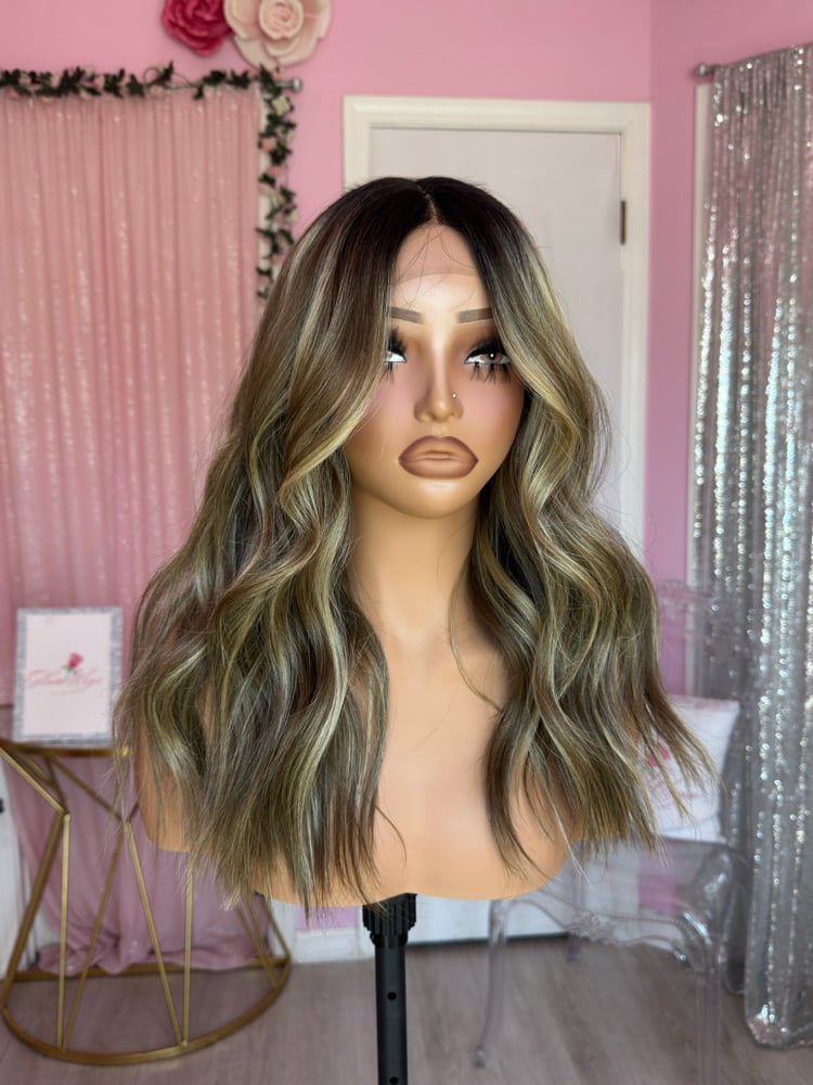 18 inches tea part lace front glueless wig, synthetic and human hair blended luxury fiber heat resistant up to 400° natural hair texture. Please refer to card that comes with your order for heat styling and care Instructions. combs and adjustable straps inside stretch breathable cap final sale item.
